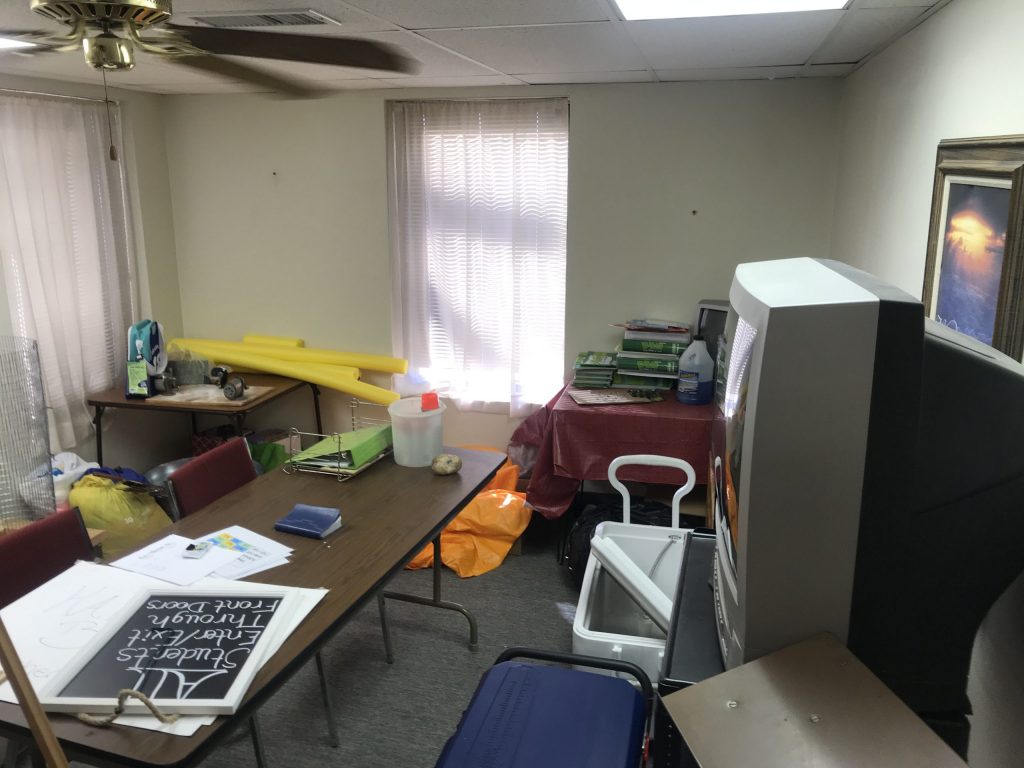 In order to design a ramp that meets the ADA code, we need more room on the inside of the entry. We know we need to create space for the foyer as well. To gain the necessary space, we are proposing to remove the two walls that separate the nearest two classrooms from the hallway, and use the resulting space for a foyer that can handle the ramp and a small fellowship space.
